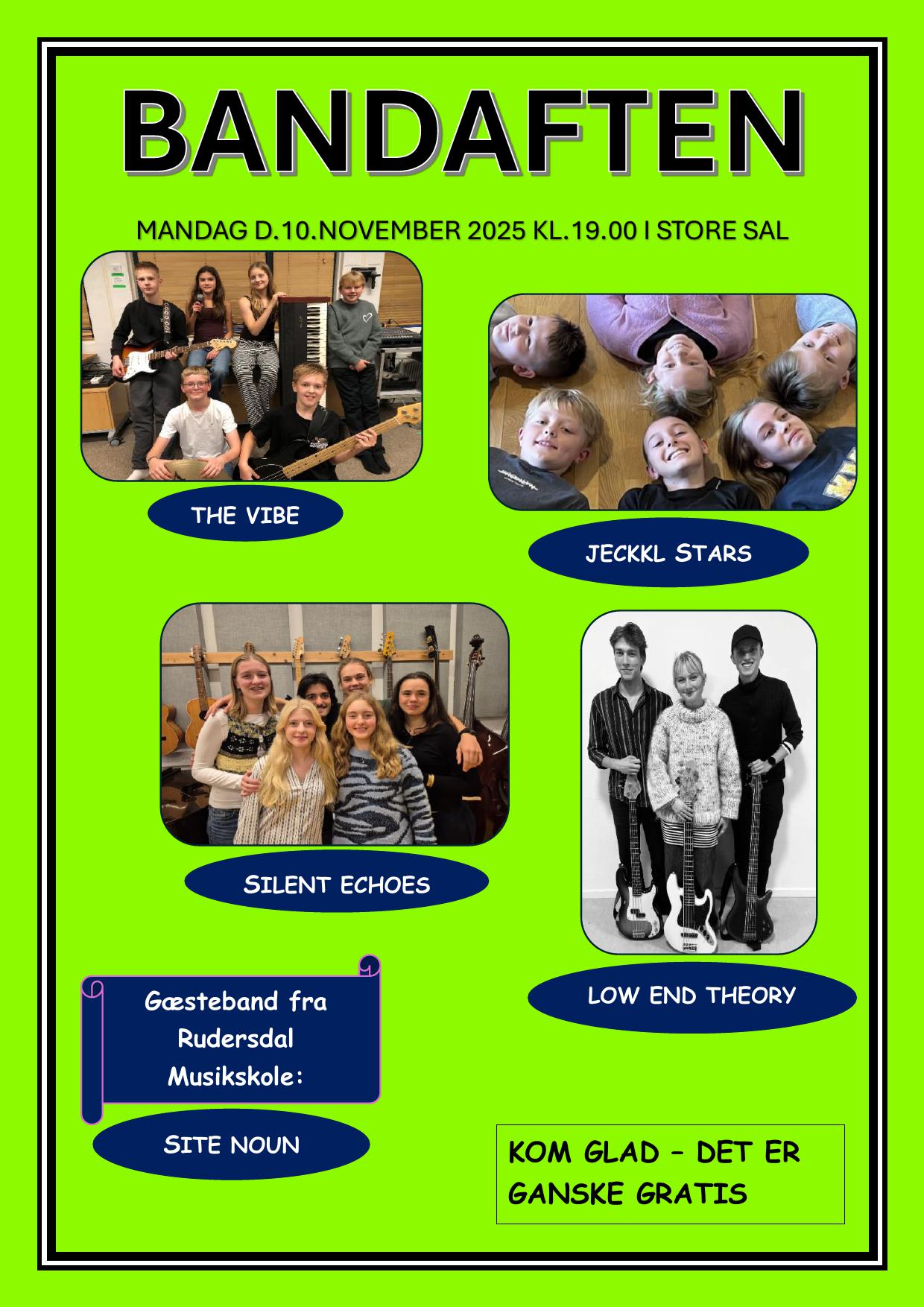 Bandaften mandag d.10.november kl.19-21 i Store Sal på musikskolen.